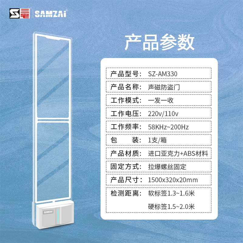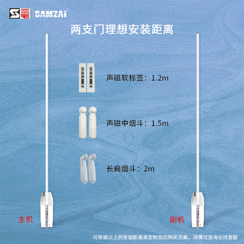 检测距离:软标签130cm~160cm,硬标签150cm~200cm