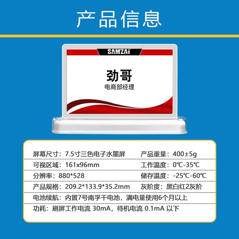 电池续航:内置7号南孚干电池,满电量使用6个月以上