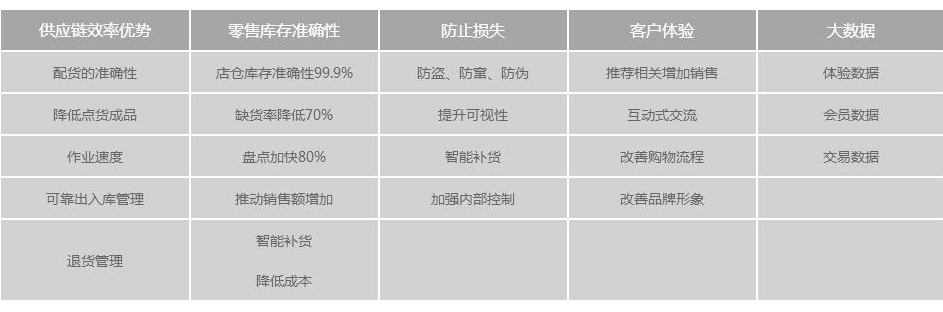 进行货品防盗,还可进行进行各项管理功能,商品的登记自动化,盘点时不需要人工的检查或扫瞄条码,更加快速准确,并且减少了损耗。通过RFID 解决
